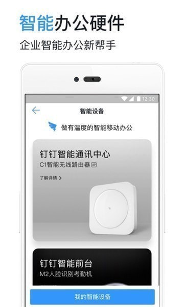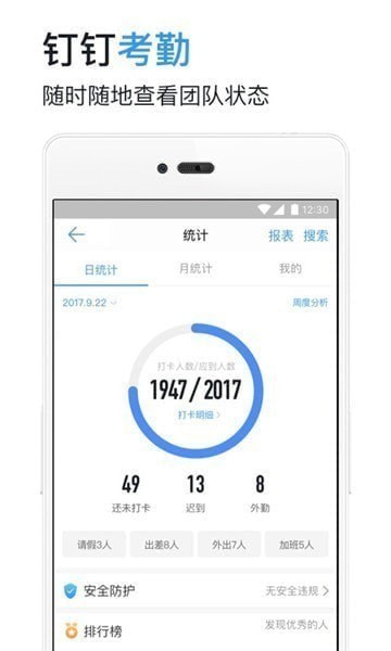 【智能办公应用】提供考勤、签到、审批、日志、公告、请假、报销、出差等OA功能,同时支持企业自定义应用接入,全面实现智能移动办公。
