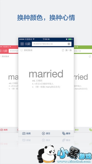 金山词霸iPhone版全新金山词霸8新增权威词典内容,更多丰富的使用场景、例句为英语学习者提供严谨的用词参考和权威的单词翻译。此次特别设计的交互界面,亲和、简洁,提供给使用者舒适的视觉体验,减少了用户阅读释义的困难,使用者可以一目了然地掌握单词含义及使用场景、动词短语等关键信息,大大节省用户在查词过程中所消耗的时间和精力。此外,金山词霸7产品中广受好评的多语言拍照取词功能得以保留并加强,进一步提高了取词、翻译的识别速度及准确率。