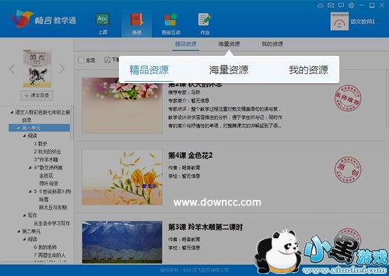 精品资源、海量资源“到书到课”推荐,方便老师使用。选择需要备课的课本后,还可以自动生成目录,轻松开始针对每一课进行备课工作。