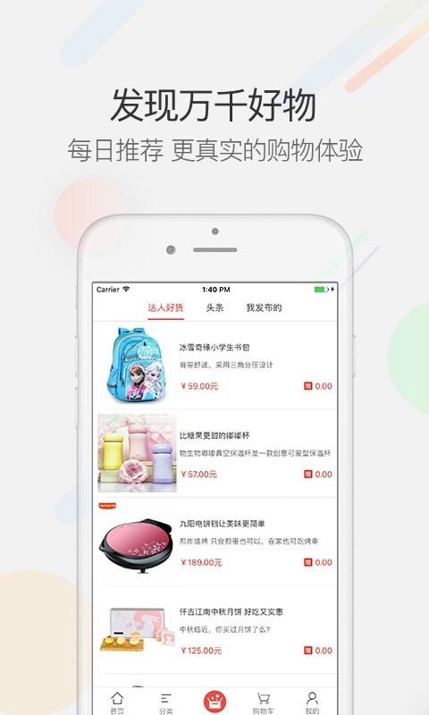 5.【精彩发现】为您呈现食品生鲜、手机数码、母婴玩具、居家生活、酒水饮料等头条资讯与好货