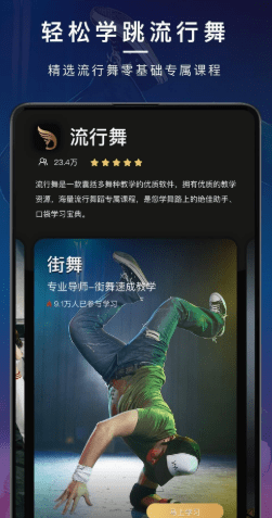 一款专为舞蹈爱好者打造的视频学习平台,海量舞蹈视频分享,各类舞蹈专业教程,自学舞蹈者的福音,无论你想要什么,这里都能满足你,只为让跳舞更简单、更有趣! 再也不用担心学不会跳舞啦!