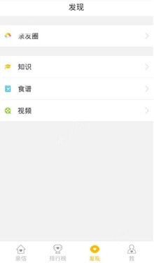 3、在发现页面中可以查看亲友圈的信息,同时还可以了解知识、食谱、视频等相关信息;