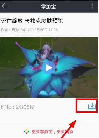 进入到lol掌游宝中,点击视频按钮,就可以看到详细的游戏视频列表,包括娱乐、解说及赛事,选择你想要下载的游戏视频;