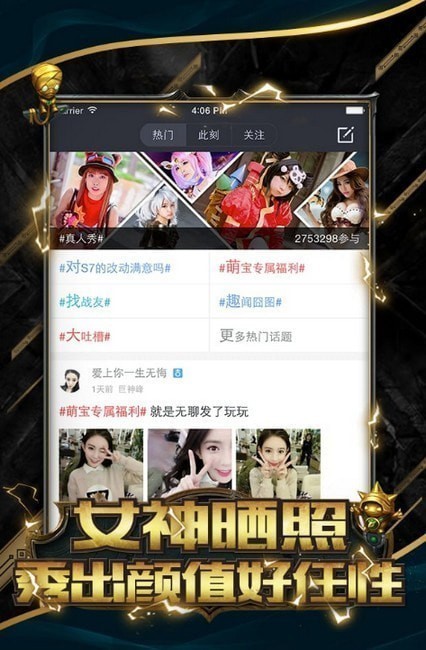 LOL掌游宝最新版本是一款英雄联盟游戏资讯app,最新最全的活动资讯抢先看,英雄的削弱和加强抢先知,还有大神直播,游戏攻略和女神爆照哟,快来小黑游戏下载体验吧!