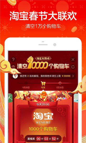 去年春晚,淘宝首次派出了1000个“清空购物车”的名额作为送给用户的新年利是。今年,淘宝清空购物车的数量在去年的基础上翻了10倍。