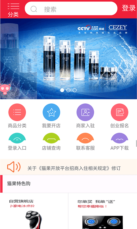 猫果网app是一款专注于优惠购好物的手机网络购物应用软件,汇聚全国精品好货,种类齐全精确分类,平台对每一件商品都是层层严选,绝对的正品好货保证,更有限时抢购专区,百万精品等你来,为你打造省钱购物方式,还在等什么,快来下载吧!