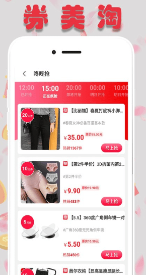 券美淘app实时更新大量商品,9.9元包邮,19.9元包邮给您特惠惊喜;