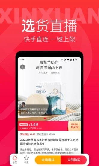依托辛选平台强大的供应链能力,辛选帮精选万千优质商品,以极具竞争力的品质和价格,为主播提供货品支持。主播无须一一对接品牌商,即可自由选货,一键上架,通过直播、短视频等形式带货,达成商业变现。