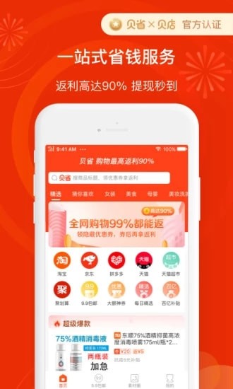 贝省-购物省钱助手!免费拿返利领优惠券,天天都是双11!