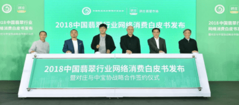 今年,对庄与中宝协联合主办了《2018中国翡翠行业网络消费白皮书》,并在上海举行签约仪式。在白皮书中引用了大量的数据为去年的翡翠行业进行了分析,并在对庄翡翠APP内提供第三方鉴定担保交易,以解决消费者的后顾之忧。
