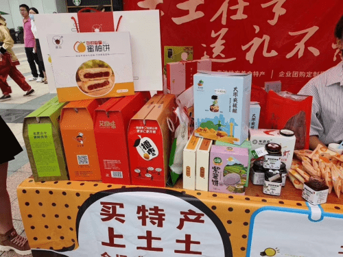 当天,活动现场一大批商家、民众齐聚仓山万达广场,在柚子的清香中有一个摊位格外引人注目,红色的布展,中国风装饰,桌子上摆满了各色各样的特产礼盒,引来现场民众驻足围观。