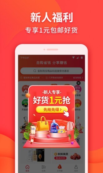 包括每日推荐、精选优品、一元购、白菜价、好单库、9.9包邮、直播间、商城等各个模块,每天更新上万件优质商品。