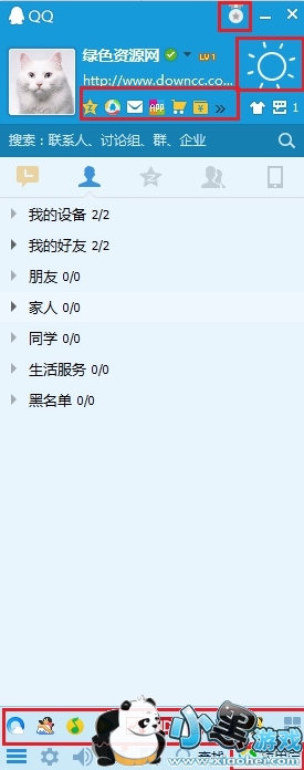 界面管理器:只保留了基本项目,尤其是个人信息区就剩下QQ空间和我的邮箱(前者也应该去掉),同时皮肤设置、场景秀、多彩气泡神马的都走吧走吧。