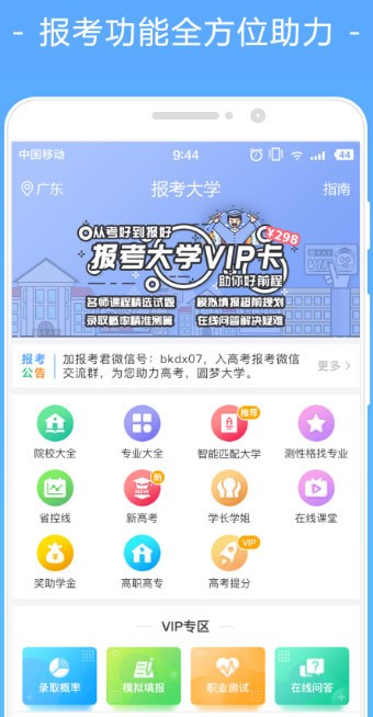 报考大学是一款高考志愿填报应用,帮助学生及家长选择心仪的大学进行高考志愿填报,报考大学帮你不浪费每一分高考考分。