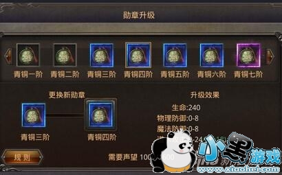 升级勋章所需要的物品:声望,目前我们可以通过皇城悬赏和除魔任务来获得声望,每次升级勋章都会提升我们非常多的战斗力,每当勋章提升了一个级别升级所需要的声望就会提高很多。