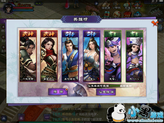 膜拜:英雄拜见英雄,可给大量经验,98仙玉拜见英雄,获得300万经验。每天仅限一次仙玉拜见。
