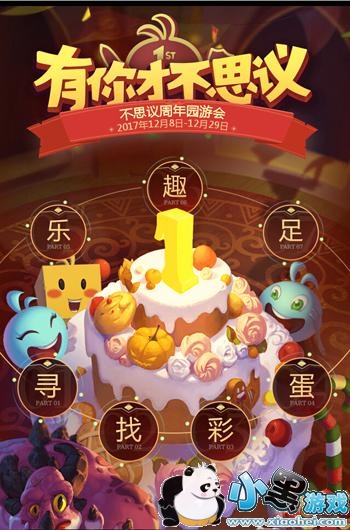 12月8日,《不思议迷宫》迎来了一周岁生日,收到多多生日祝福的冈布奥们欢天喜地办起了生日园游会,并为各位冒险者带来了“寻找彩蛋乐趣足”七大福利活动:探险试剂的调味艺术、涉及历史的趣味答题、乖巧可爱的生日伴手礼、抓Peter地图彩蛋、收集材料。
