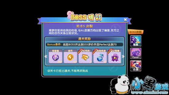 通关条件:战胜BOSS并达到SSS评价并且perfect达到70。