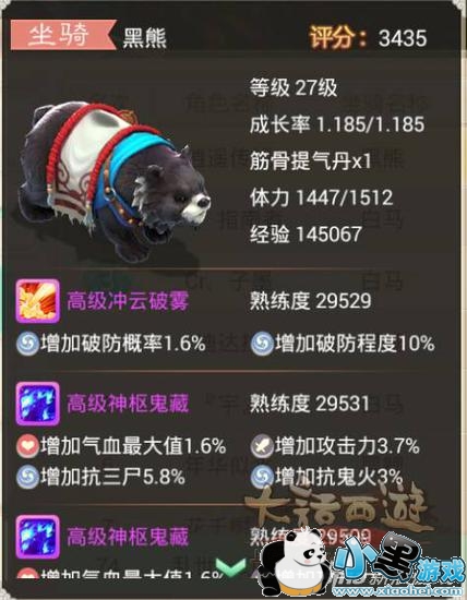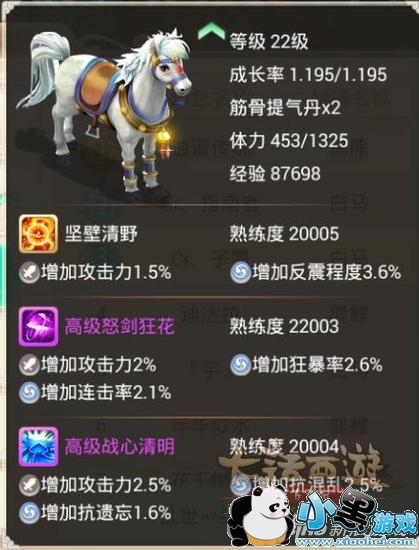 大家最关心的技能肯定有这个加速技能了,目前出的1坐骑只有3号技能格有加速技能,目前26级 满熟练度30000,加速2.4。