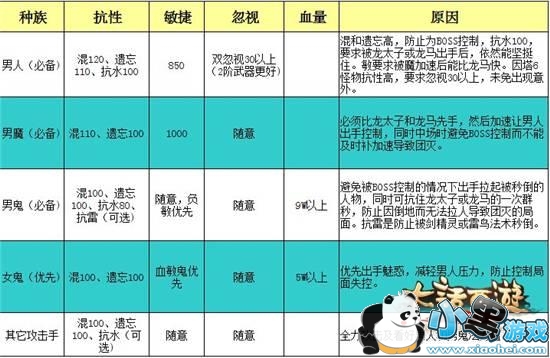 打法要求:BOSS会放混和遗忘而忽视很高,这里就要求人物必须双抗100以上,尤其男人必须双抗110以上。避免局面失控。其他人物标准底线是双抗100以上,太低会注定全场战斗领饭盒(当群众演员)。而且超高的敏捷决定BOSS不低的出手回合,要求控制好龙太子和龙马后优先控制,因其血量超高和抗性要一直控制不断攻击,在控制好后可不用在意,按顺序击杀。