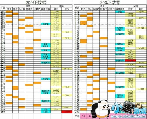 奖励分析:奖励金钱数加起来是1600万左右!根据数据图,每10环一个轮回,每个轮回都比上个轮回多点钱。第一环30000,第十一环是32760,第一百九十一环就82440。最后得到师贡1100万,(银币500万,减去买技能书的100万)其实银币收入400万!最后一环双奖励!银币和师贡。最后的重头戏来了。最后一环必定奖励盘古或神兵。这可以拜下鸡驴大神或刷下世界拉,基本上很大几率为盘古。