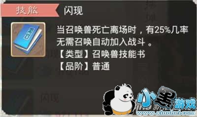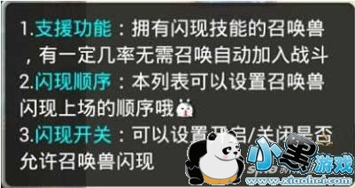 ps:支援顺序是优先考虑排第一位的召唤兽,并不是说如果第一个没闪出来继续考虑第二个,排第一的如果这回合没有闪现出来本回合是不会继续往下判定后面顺序召唤兽闪现技能是否生效的。简单说来就算带10个高级闪现的召唤兽没闪出来的概率还是65%,而不是65%的10次方。