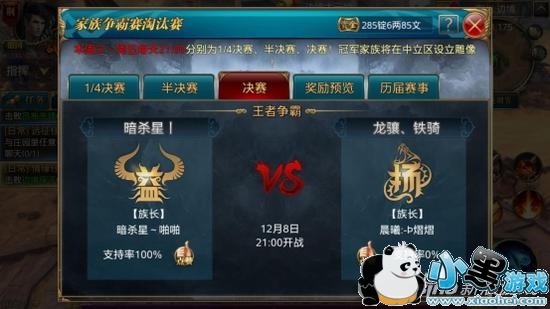 益州[暗杀星],益州国王家族,国王[暗杀星、啪啪]扬州[龙骧、铁骑],扬州国王家族,女王[晨曦熠熠]。两支参赛队伍,经历了前面各阶段的严酷的考验,一路走来已经具有王者风范!站在决赛的顶峰,“一览众山小”。是扬州[龙骧、铁骑]能够登上的宝座获得卫冕,还是益州[暗杀星]能够获得冠军?让小编带来该大区的[家族争霸赛]决赛的赛前分析。