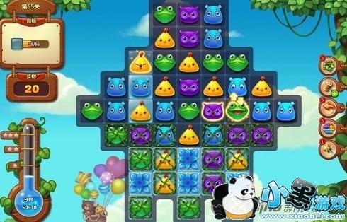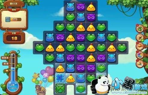 开心消消乐第65关需要注意的是:1、存在镂空障碍2、存在蔓藤栏障碍3、存在冰雪覆盖物开心消消乐65关三星攻略:这关的障碍很多,好在动物种类不多,就4种,比较容易生成特殊动物。