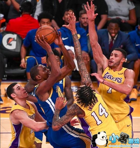 观看完前辈球衣退役仪式的湖人第三节状态神勇,下半场顶替大洛佩斯(受伤)首发的库兹马开场即命中三分,鲍尔抛投命中,湖人反超比分。本节库兹马单节砍下13分,但杜兰特频频走上罚球线,鲁尼也有出色表现,勇士勉强领先1分进入末节。第四节英格拉姆连续冲击篮筐,一度将比分扳平。杜兰特、汤普森相继命中远投,这边则靠英格拉姆和兰德尔罚球紧咬,湖人97-99落后2分。此后勇士虽然打铁不断,但湖人同样无法投进球。杜兰特跳投命中,波普回敬三分,最后27.8秒,英格拉姆突破抛投,将比分扳至102平!杜兰特面对兰德尔防守三分不中,波普追身三不沾!双方进入加时。