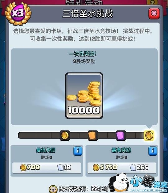 在三倍圣水挑战模式,收集6个皇冠,将可以获得20个任务积分和20个宝石。