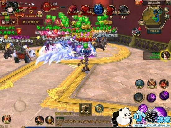 20:15,攻方人马集体压向朱雀。而益州人马紧紧跟随。20:17,益州官员先行安全一波后领取战车去青龙处守卫,此时朱雀被爆。20:19,青龙处的守方官员拉令直奔白虎,青龙和玄武相继被青州拿下,第二波三点启动,国家神兽再次被激活。在青州攻打中央神兽的同时,益州的战车和骑兵分别在白虎和玄武处,2分钟后两点相继归位,中央神兽血量告急。