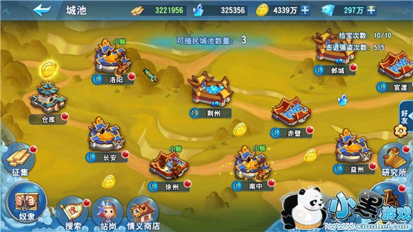 3)其他玩家推荐其次升级洛阳、长安、南中,获取金币。
