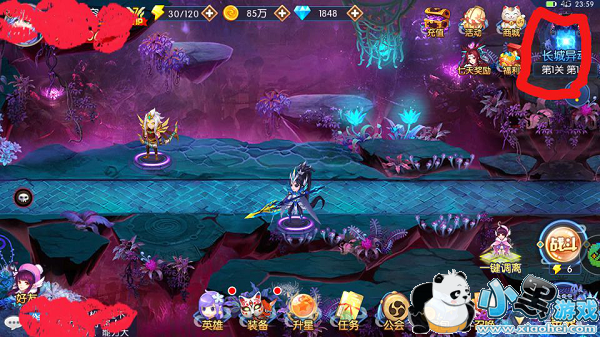 进入游戏在主页,点击右上角进入游戏副本窗口,如下图所示: