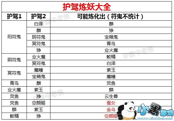 了解了五行+时辰的关系之后,再来看看用于炼妖合成的护驾选择。