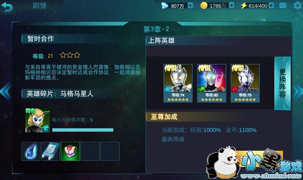 《奥特曼传奇英雄》从第三章开始就需要考虑英雄搭配了,根据守关BOSS的特性选择可以克制的英雄进行攻击。