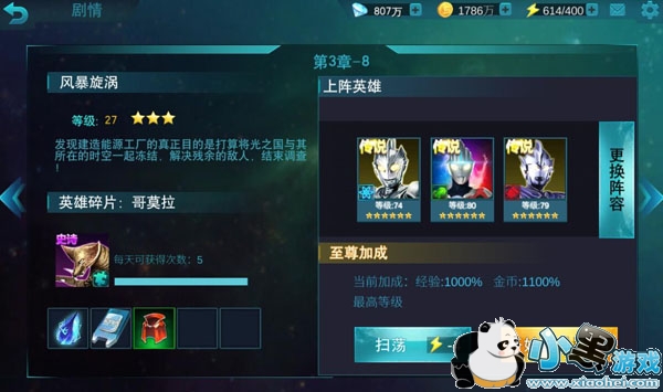 第三章副本是银河传说,相信这个时候很多小伙伴的备用英雄已经开始逐渐丰富起来了,可以根据副本难度逐渐调整英雄的使用了。