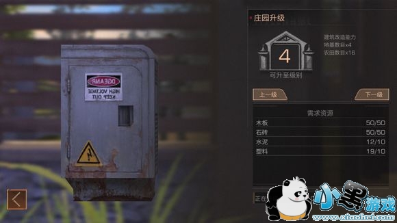 庄园升级时需要消耗资源,不同等级需求资源也不同,二级庄园只需要5个木板,升级后基地数x3、农田数x16,对应增强庄园。