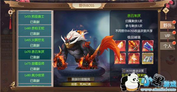 赤云朱厌,70级野外BOSS,刷新地点为荒州幻境,大侠们可以通过传送功能,到达该地图,并自动寻路至目标坐标点,开始挑战。