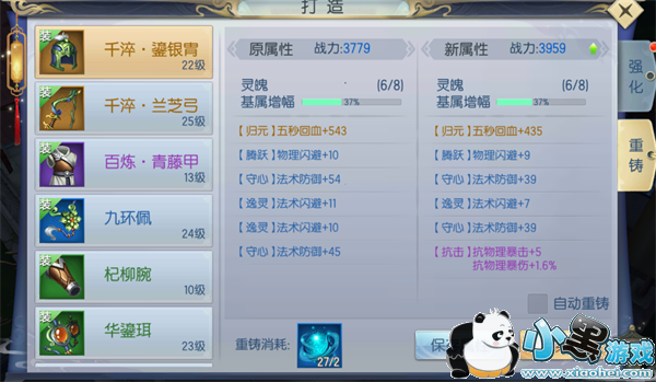 重铸会生成新的属性和战力,当新属性战力比原属性战力高时,玩家可以选择保存属性。当新属性战力比原属性战力低时,玩家可以选择继续重铸。