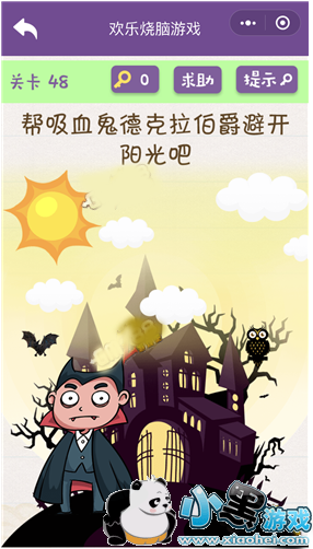 《欢乐烧脑游戏》第48关怎么过?帮吸血鬼德克拉伯爵避开阳光吧?今天为大家带来欢乐烧脑游戏48攻略,欢乐烧脑游戏是一款非常有趣的益智类游戏,当然里面的题目以及答案都非常的无厘头,不仅可以让你脑洞大开,同时还会给你带来无限的乐趣。