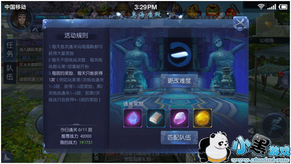 【基本规则】玩家等级达到28级开启乌海蜃殿玩法,该玩法为组队模式,每天首次通关可获得大量奖,每日不限次数挑战,每次挑战都已第一层为起点,每层奖励只可获得一次
