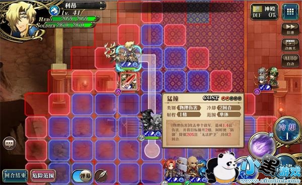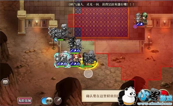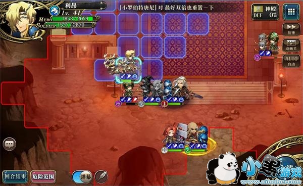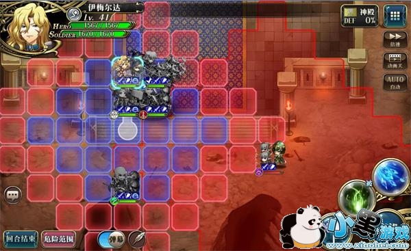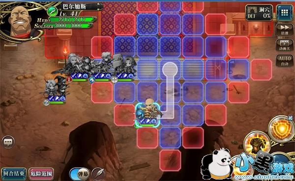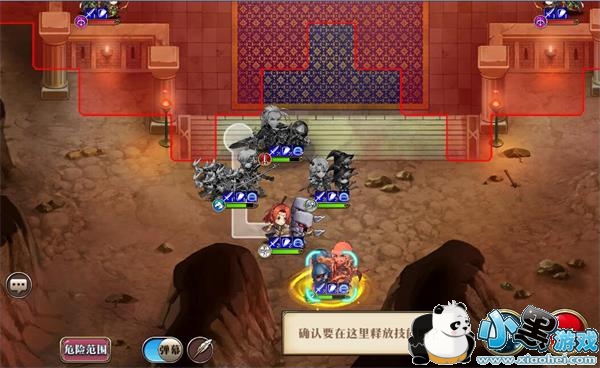 第2回合,利昂和女王干掉战士小兵,皇帝走到另外一边,让剩下的战士小兵来攻击皇帝,其余人回复利昂的HP。这时,光头应该和皇帝保持2格以外的距离,以免刚来到45兄贵的你被光线干掉。