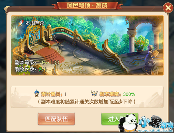 虽然挑战副本看起来不可战胜,但是通关的人数越多,副本的难度会变得越低,相对的,如果能顶着超高难度完成首杀,将得到首杀奖励和无上的荣耀!