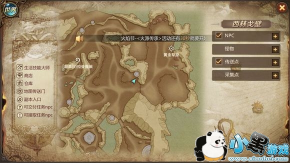 达到触发条件的完成首先传送到西林戈壁地图,之后来到地图的左上角,荆棘谷副本附近