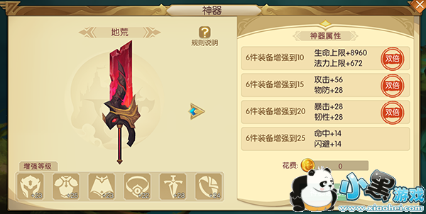 当在迷宫挑战玩法中成功击败boss后即可获得神器,可通过主界面点击【增强】入口进入到神器界面。