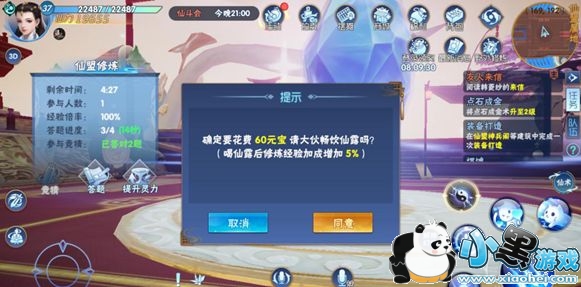 在仙盟修炼时可以花费元宝宴请仙盟成员,令所有参与活动的成员获得更高的修炼收益,从此你就是仙盟里最受欢迎地小可爱~