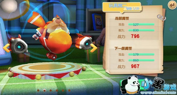 玩具熊二的属性比积木熊二还要少,其初始攻击属性只有127点,虽然耐久有830点,但是攻击属性还是太低,所以就显得并不实用。