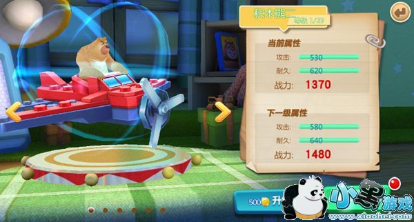积木熊二的获取也是非常容易,登陆游戏就能够获取,积木熊二的初始攻击只有530点,初始耐久只有620点,虽然获取容易,但是积木熊二却是是非常低的!