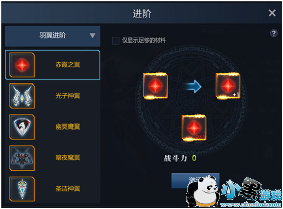 不同羽翼外观可以通过进阶来获取。羽翼进阶需要消耗【羽翼升星石】,提升到下一阶可获得更酷炫的羽翼形象和战力加成!