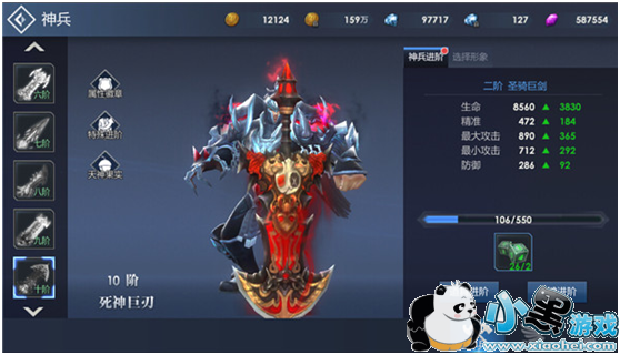 神兵系统是《冲刺萌龙》里可以改变角色武器外观的系统。从一阶开始可以使用神兵升星石进行星数提升,当每一阶的星数提升满后,即可用神兵进阶石进行进阶,神兵进阶后可获得更酷炫的武器外形和属性战力加成!